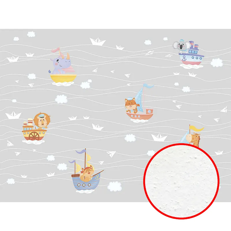 Фреска детская Ortograf Little Friends 34392 Фактура бархат FX Флизелин (4*3) Серый/Разноцветный, Животные/Корабли