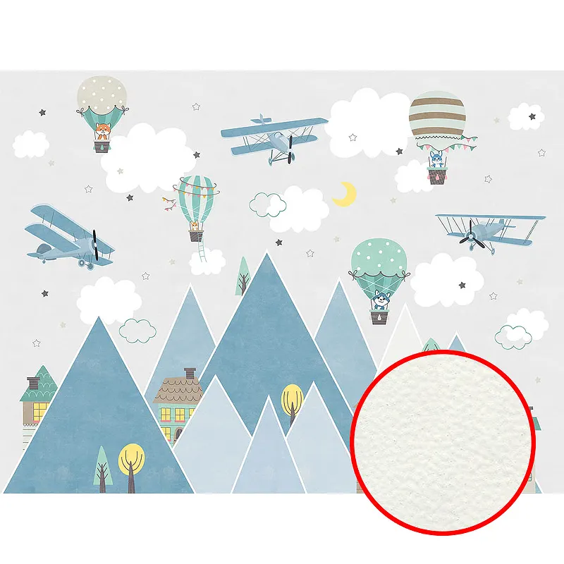 Фреска детская Ortograf Little Friends 34397 Фактура флок FLK Флизелин (4*3) Серый/Зеленый/Бирюзовый, Горы/Город/Самолеты