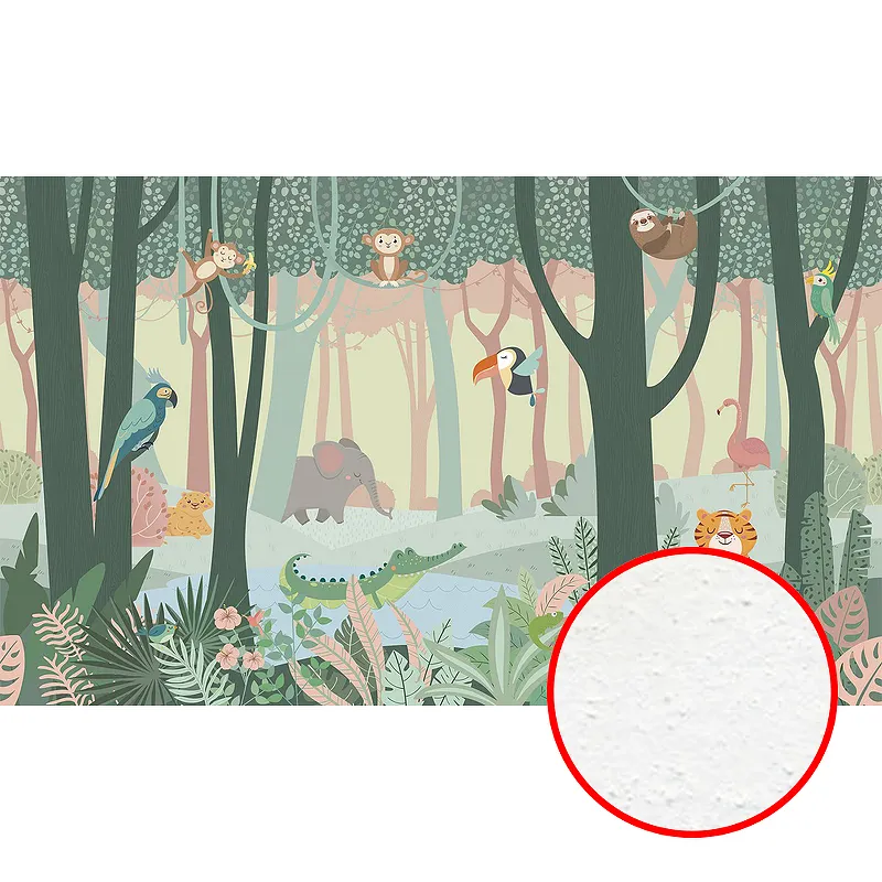 Фреска детская Ortograf Little Friends 34418 Фактура бархат FX Флизелин (5*3) Зеленый/Бежевый/Розовый, Деревья/Животные