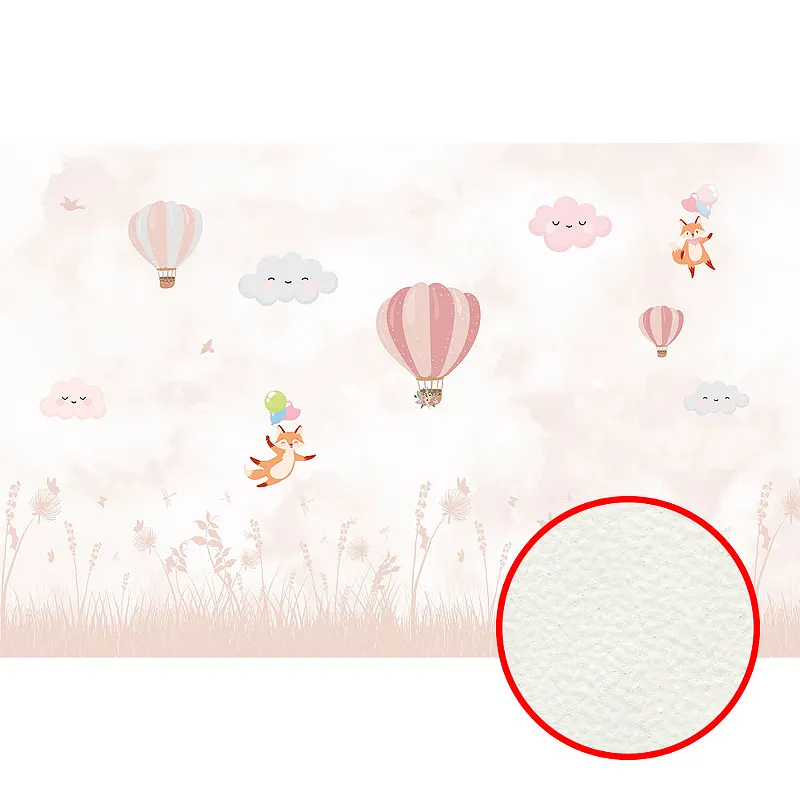 Фреска детская Ortograf Сказочная страна 34223 Фактура флок FLK Флизелин (4,2*2,7) Розовый, Воздушные шары/Животные/Облака
