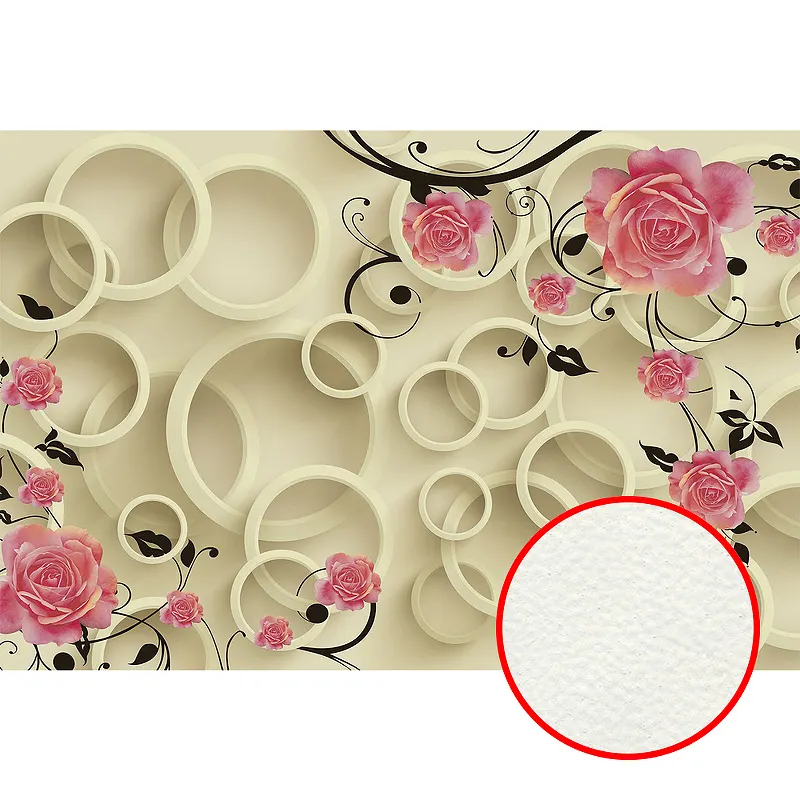 Фреска Ortograf 3D 30736 Фактура флок FLK Флизелин (4*2,7) Бежевый/Розовый, Цветы/Абстракция