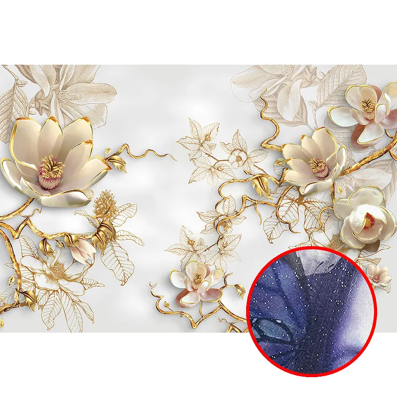 Фреска Ortograf 3D 33078 Фактура бархат серебро FX-S Флизелин (4*2,7) Белый/Золото, Цветы/Абстракция
