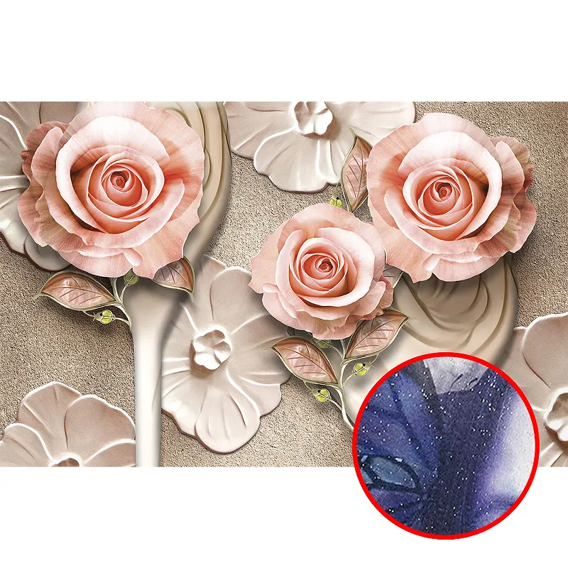 Фреска Ortograf 3D 33091 Фактура бархат серебро FX-S Флизелин (4,2*2,7) Бежевый/Розовый, Цветы/Абстракция