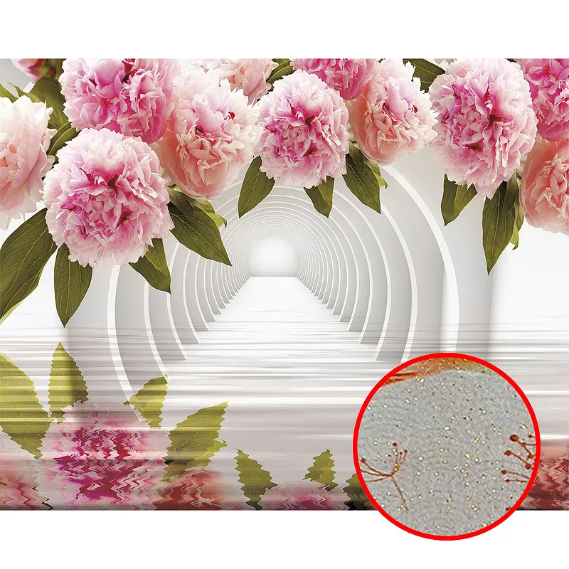 Фреска Ortograf 3D 33205 Фактура бархат золото FX-G Флизелин (3,4*2,7) Белый/Розовый, Цветы/Абстракция