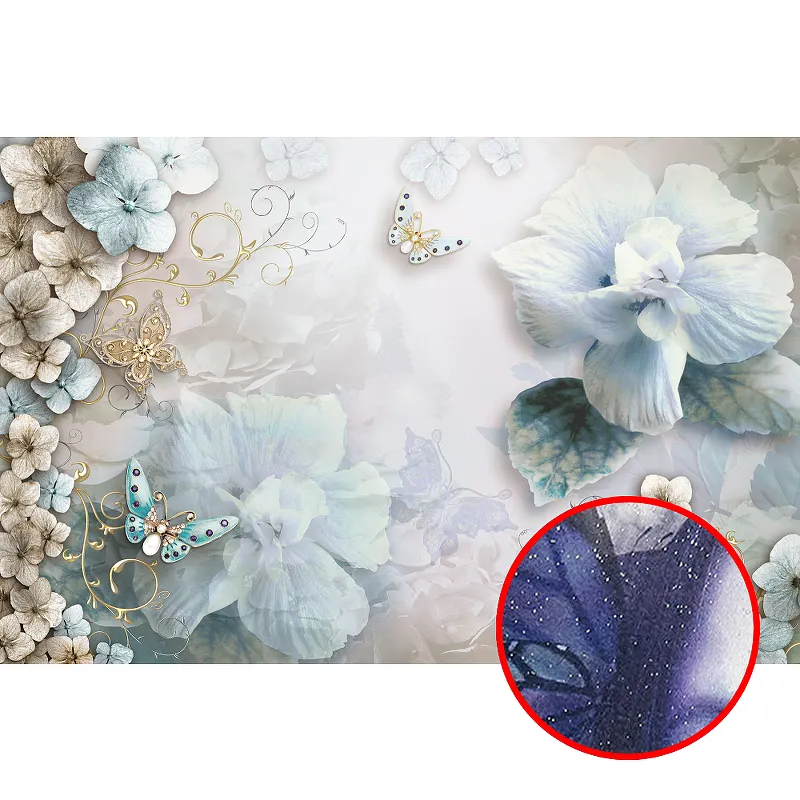 Фреска Ortograf 3D 6654 Фактура бархат серебро FX-S Флизелин (2,95*1,96) Голубой/Бежевый, Цветы