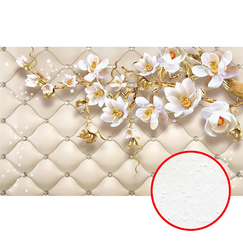 Фреска Ortograf 3D 6677 Фактура бархат FX Флизелин (4,4*2,7) Бежевый/Золото/Белый, Цветы/Абстракция