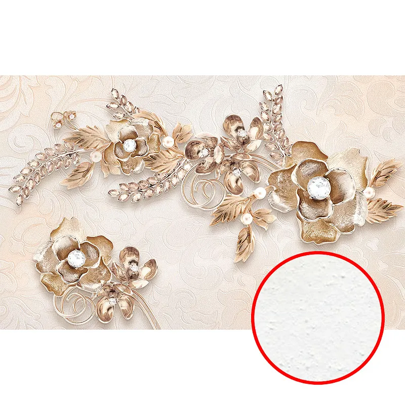 Фреска Ortograf 3D 6684 Фактура бархат FX Флизелин (3,6*2,7) Бежевый/Золото, Цветы/Абстракция