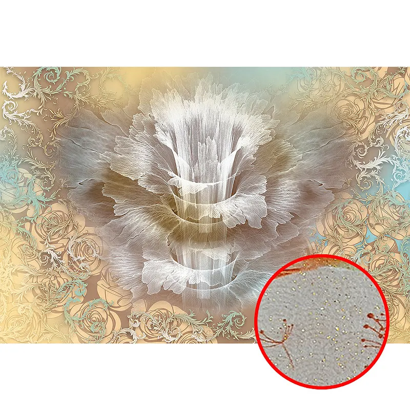 Фреска Ortograf 3D 6706 Фактура бархат золото FX-G Флизелин (4*2,7) Бежевый/Бирюзовый, Цветы/Абстракция