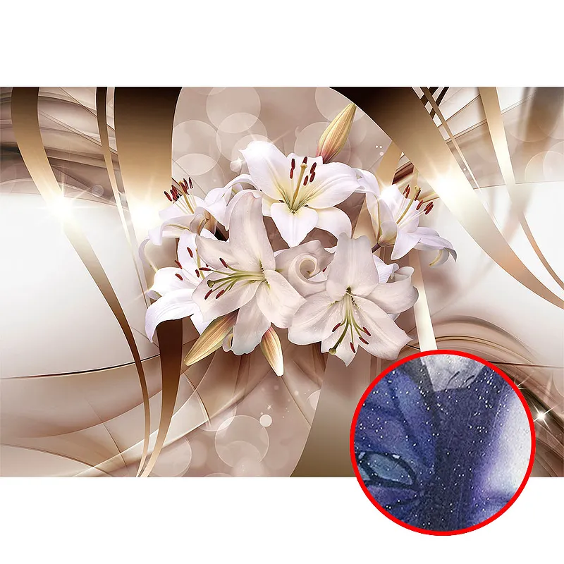 Фреска Ortograf 3D 6708 Фактура бархат серебро FX-S Флизелин (3,9*2,7) Бежевый/Белый, Цветы/Абстракция