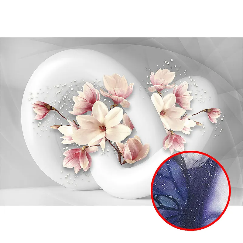 Фреска Ortograf 3D 6710 Фактура бархат серебро FX-S Флизелин (3,9*2,7) Серый/Розовый, Цветы/Абстракция