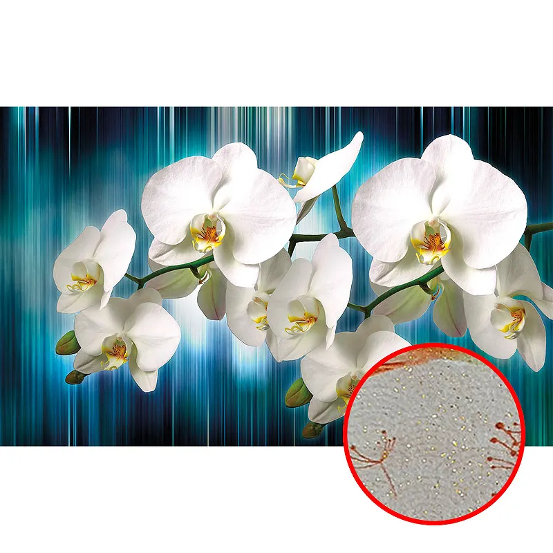 Технические характеристики Фреска Ortograf 3D 6714 Фактура бархат золото FX-G Флизелин (4,4*2,7) Синий/Белый, Цветы/Абстракция