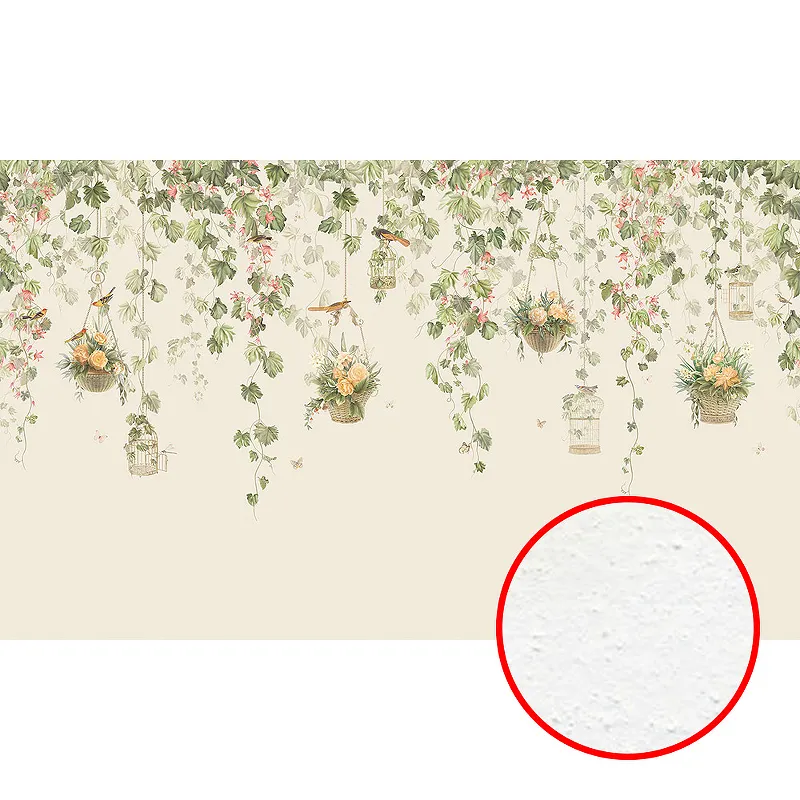 Технические характеристики Фреска Ortograf Aurora 34101 Фактура бархат FX Флизелин (5*3) Розовый/Зеленый, Цветы/Птицы