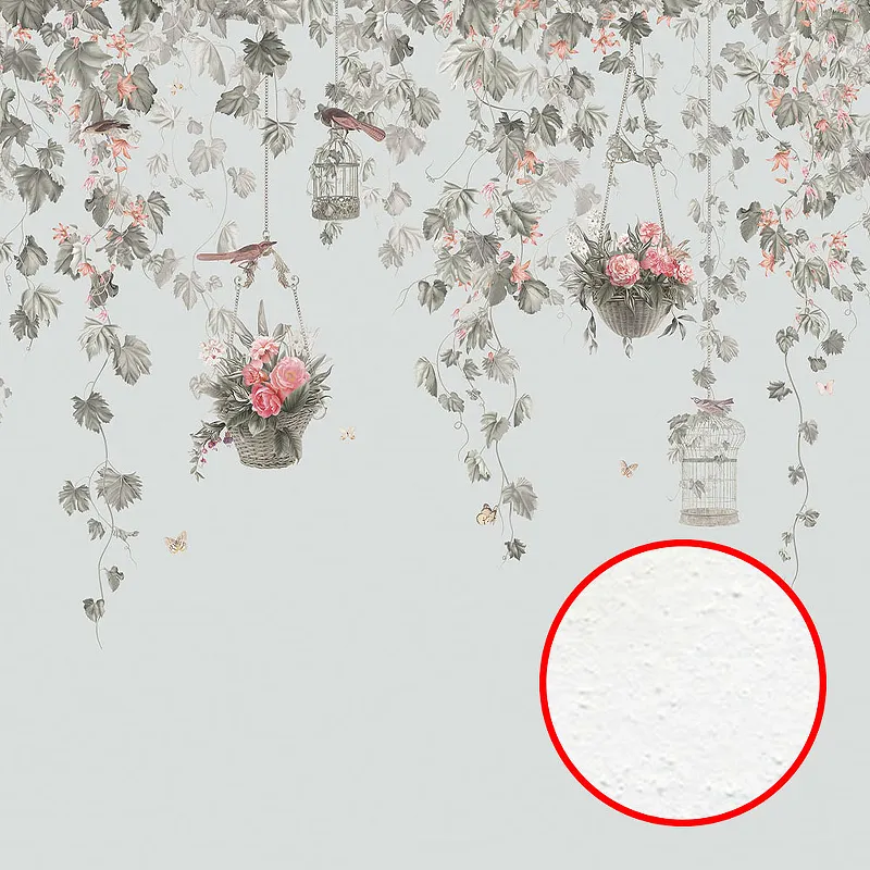 Фреска Ortograf Aurora 34103 Фактура бархат FX Флизелин (5*3) Серый/Зеленый, Цветы/Птицы