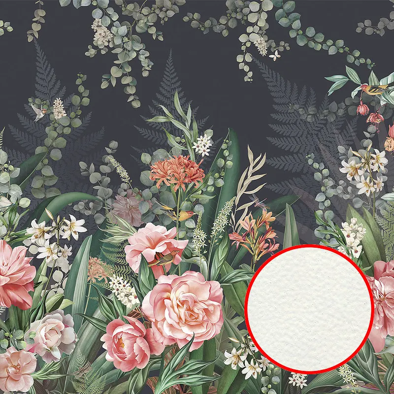 Фреска Ortograf Aurora 34104 Фактура флок FLK Флизелин (4,5*3) Черный/Зеленый/Розовый, Цветы