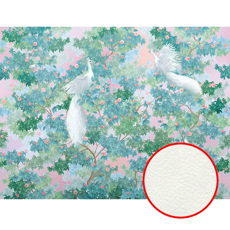Фреска Ortograf Aurora 34123 Фактура флок FLK Флизелин (4*3) Зеленый/Розовый, Листья/Цветы/Птицы