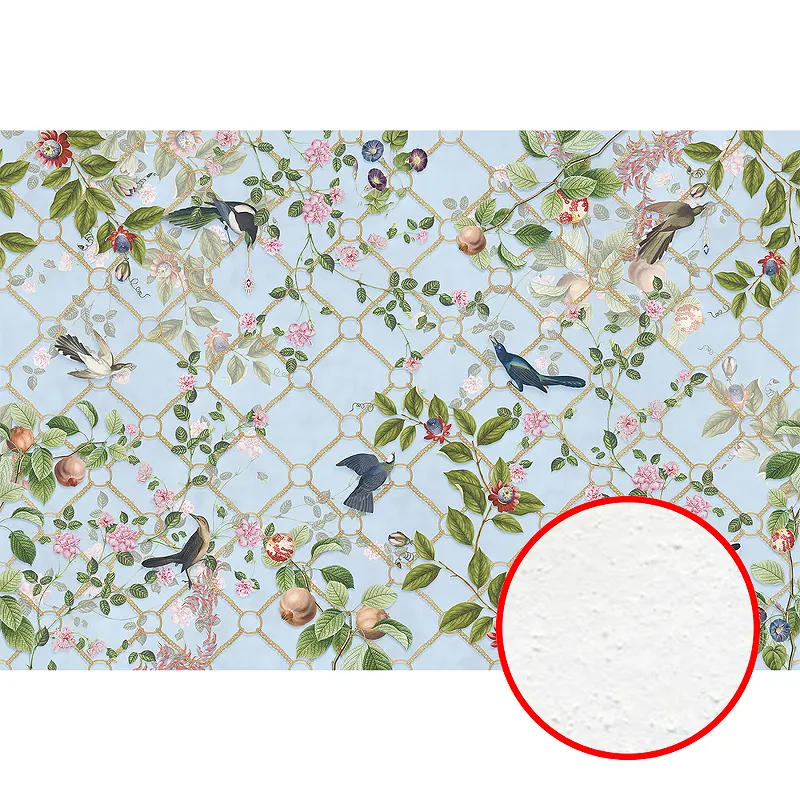 Фреска Ortograf Aurora 34126 Фактура бархат FX Флизелин (4*2,7) Голубой/Разноцветный, Цветы/Птицы