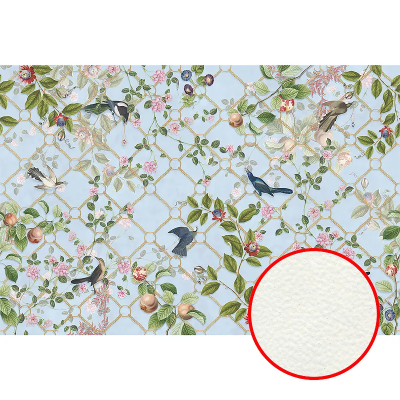 Фреска Ortograf Aurora 34126 Фактура флок FLK Флизелин (4*2,7) Голубой/Разноцветный, Цветы/Птицы