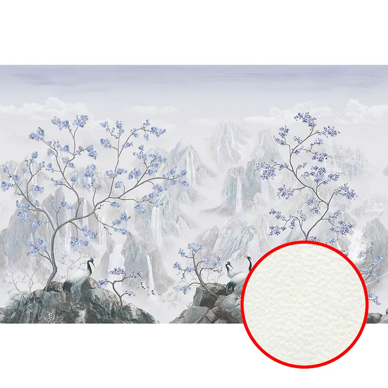 Фреска Ortograf Chinoiserie 33931 Фактура флок FLK Флизелин (4,5*3) Голубой, Пейзаж/Цветы/Птицы