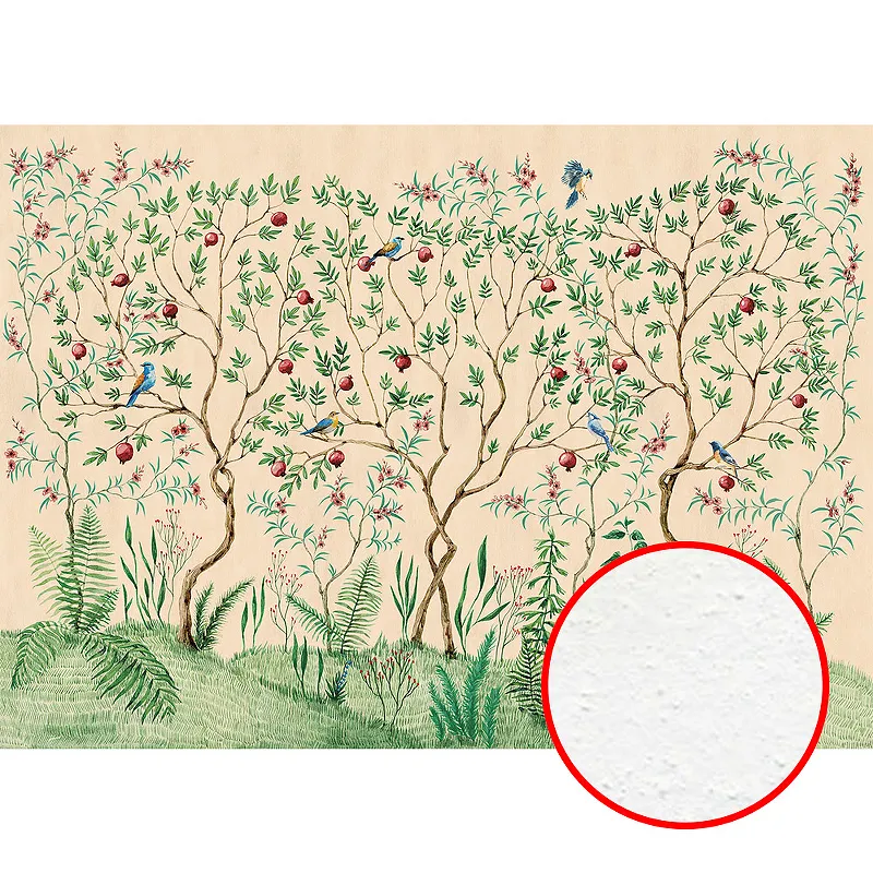 Фреска Ortograf Chinoiserie 33957 включает в себя флизелиновую основу с текстурированным напылением, что позволяет добиться бархатной поверхности и обеспечивает лёгкую установку.