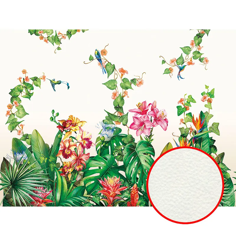 - Уникальный дизайн: Фреска с рисунком цветов, листьев и птиц создаёт атмосферу природной гармонии в вашем доме.