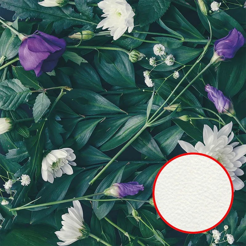 - Уникальный дизайн: фреска с рисунком "Цветы" в зелёных, белых и фиолетовых тонах идеально подойдёт для создания уютной атмосферы.