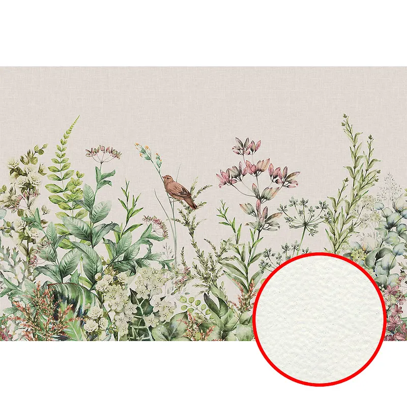 Фреска Ortograf Цветы 33602 Фактура флок FLK Флизелин (4*2,7) Серый/Зеленый, Цветы/Листья/Птицы