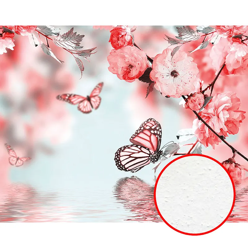 - Розовая фреска с цветами: уникальный дизайн с рисунками "Цветы и бабочки" добавляет интерьеру нежность и романтичность.