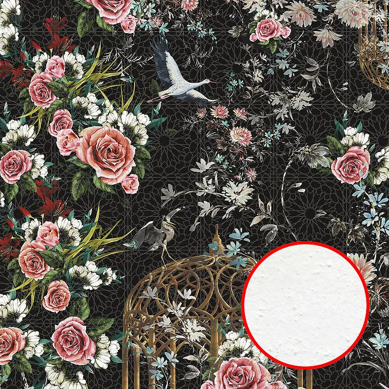 Фреска Ortograf Flora 31040 Фактура бархат FX Флизелин (4*2,7) Черный/Разноцветный, Цветы/Птицы