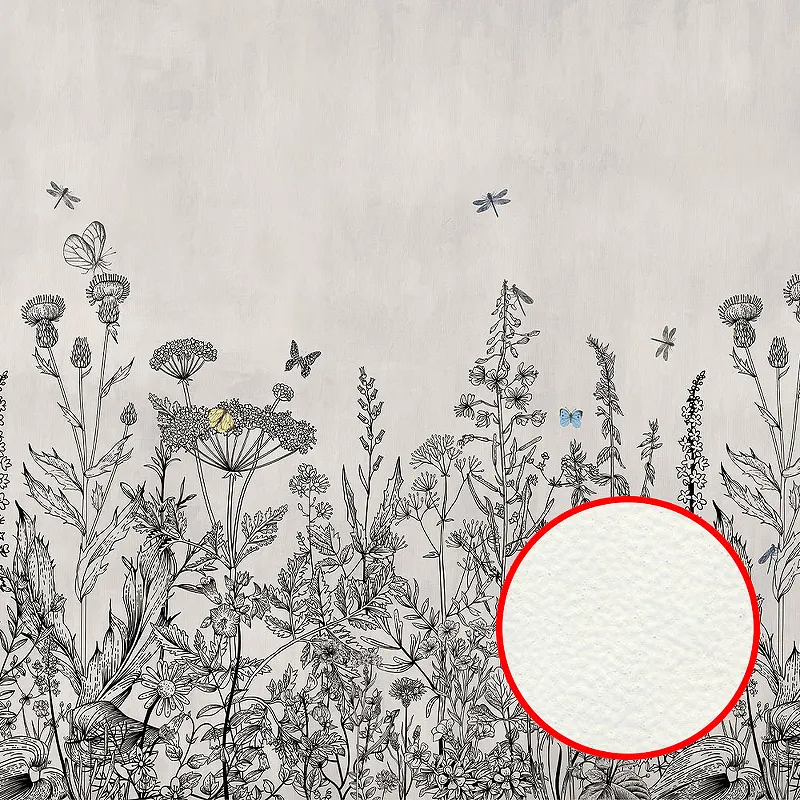 Технические характеристики Фреска Ortograf Flora 31060 Фактура флок FLK Флизелин (4*2,7) Серый, Цветы/Бабочки