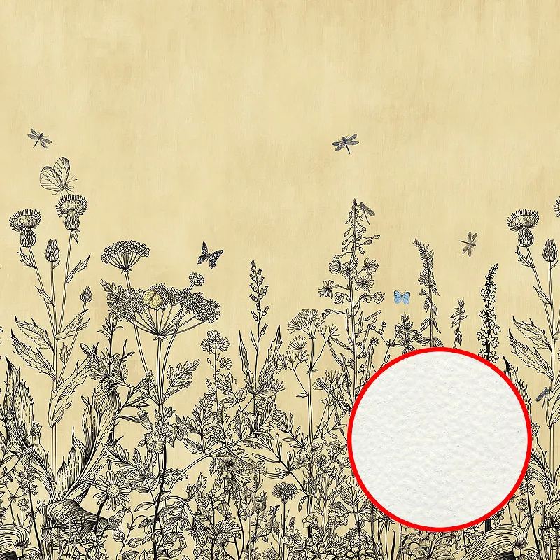 Технические характеристики Фреска Ortograf Flora 31063 Фактура флок FLK Флизелин (4*2,7) Бежевый, Цветы/Бабочки