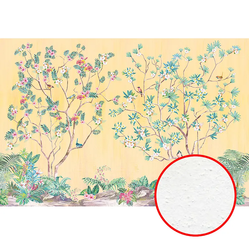Фреска Ortograf Flora 31101 Фактура бархат FX Флизелин (4*2,7) Желтый/Разноцветный, Деревья/Цветы/Птицы