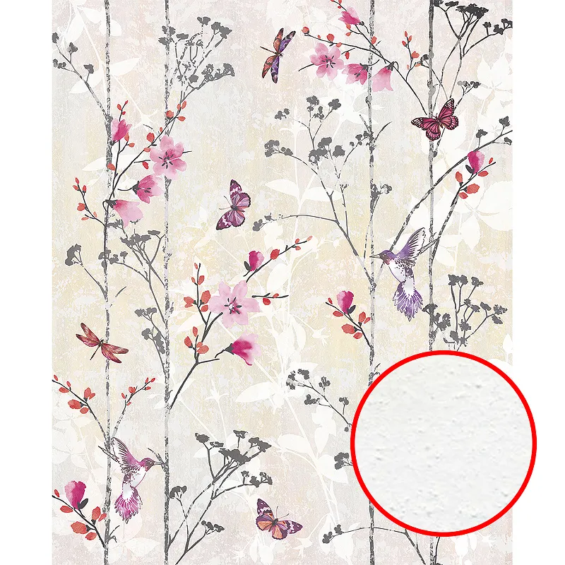 Фреска Ortograf Flora 31121 Фактура бархат FX Флизелин (2,2*2,7) Бежевый/Розовый, Цветы/Бабочки
