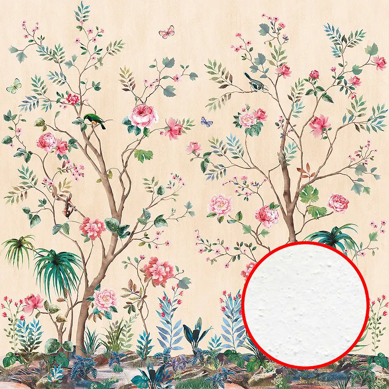 Фреска Ortograf Flora 31153 Фактура бархат FX Флизелин (2,7*2,7) Бежевый/Разноцветный, Цветы/Деревья/Птицы