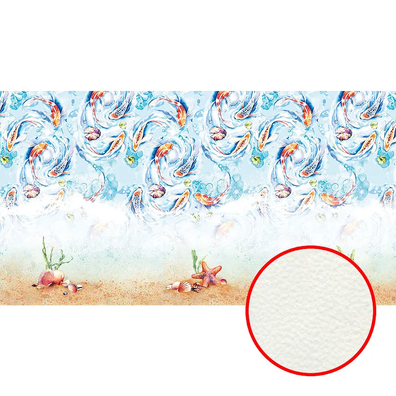 Фреска Ortograf Flora 31254 Фактура флок FLK Флизелин (5*2,7) Синий/Бежевый/Оранжевый, Рыбы