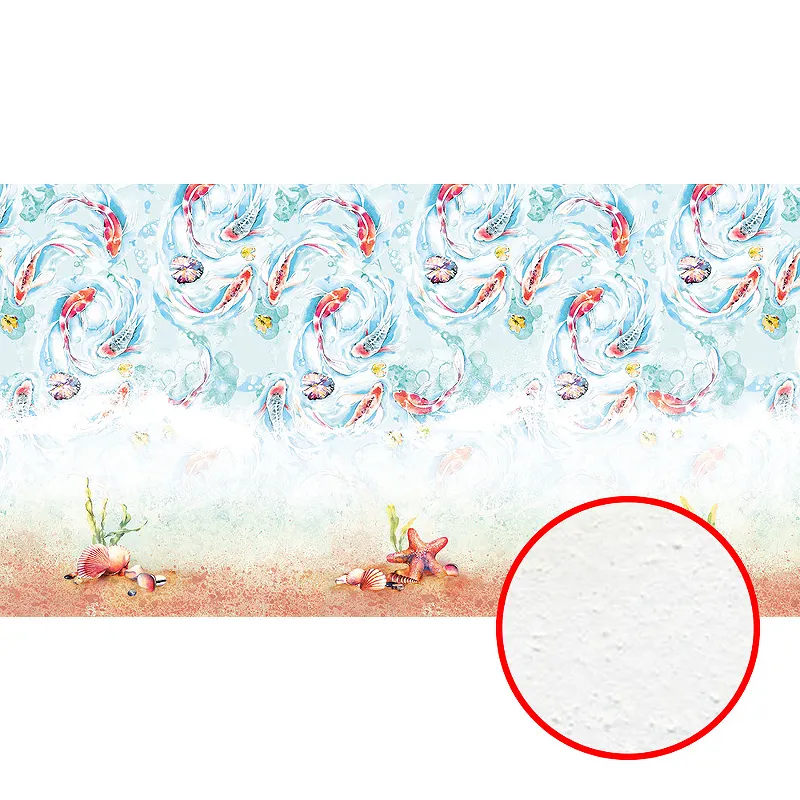 Фреска Ortograf Flora 31256 Фактура бархат FX Флизелин (5*2,7) Бирюзовый/Бежевый/Оранжевый, Рыбы