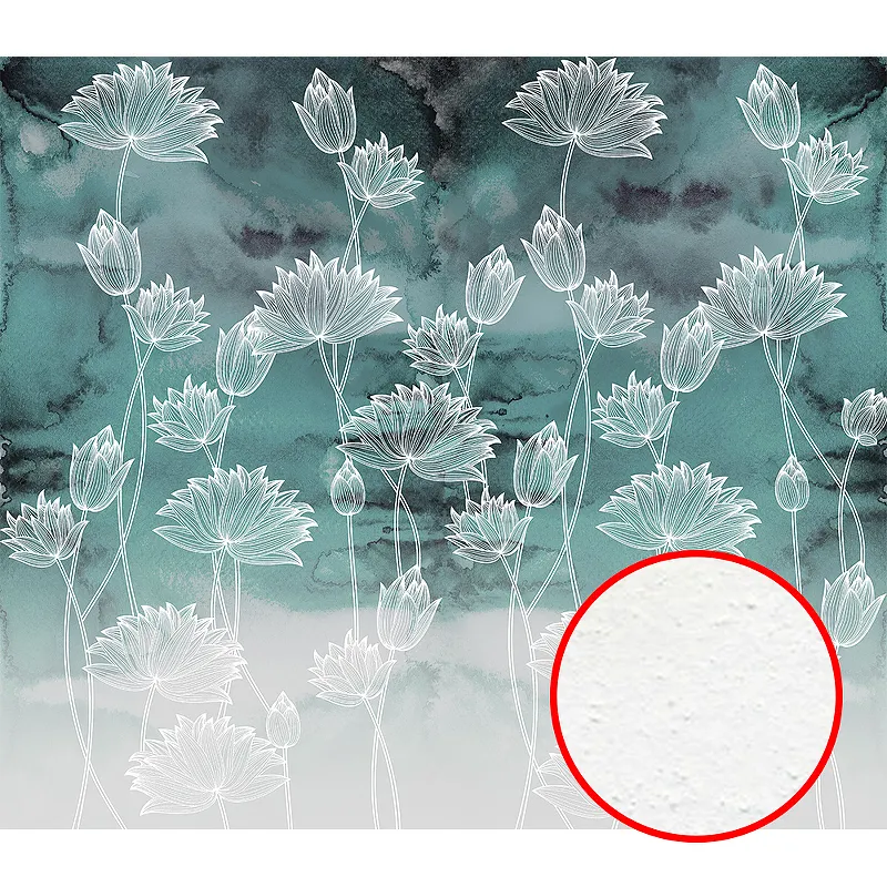 Фреска Ortograf Flower Dreams 31606 Фактура бархат FX Флизелин (3,1*2,7) Бирюзовый/Белый, Цветы
