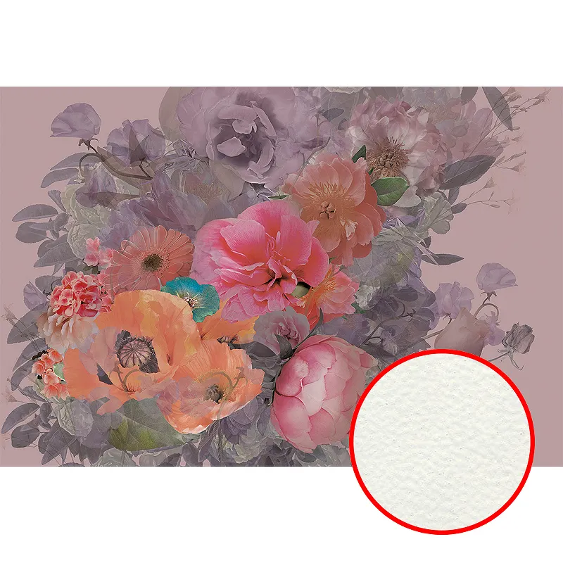 - Флизелиновая фреска с цветами: Прекрасно подходит для декора помещений, создавая атмосферу цветущего сада.