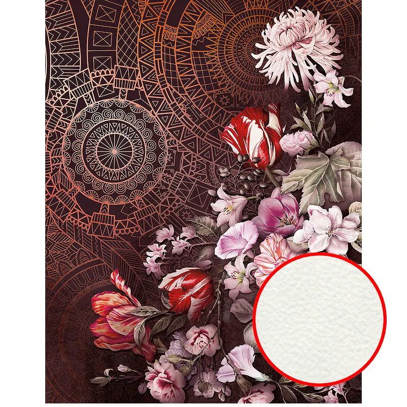 Фреска Ortograf Flower Dreams 31621 Фактура флок FLK Флизелин (2,1*2,7) Коричневый/Разноцветный, Цветы/Геометрия