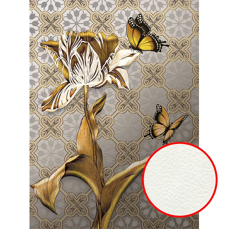 Фреска Ortograf Flower Dreams 31661 Фактура флок FLK Флизелин (2*2,7) Серый/Бежевый/Золото, Цветы/Бабочки