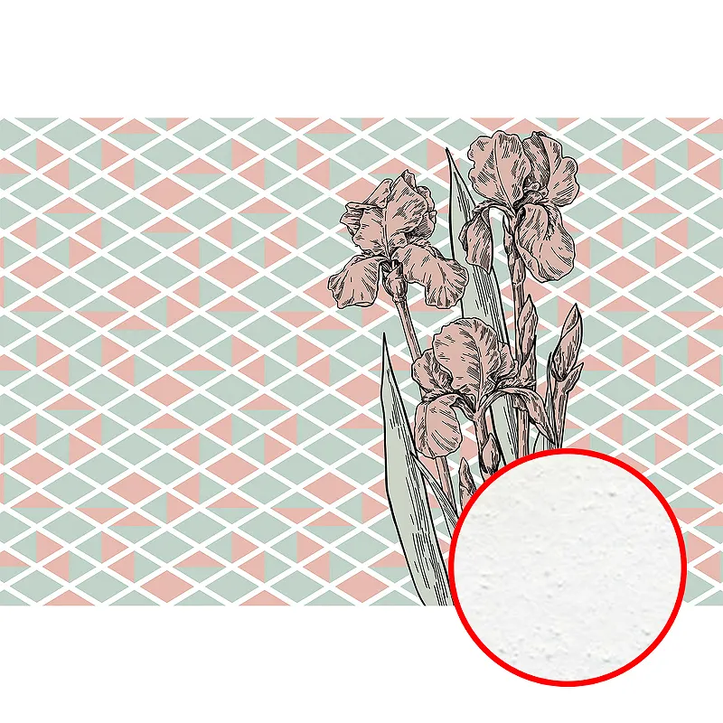 - Уникальный дизайн: Фреска с рисунком ромб и цветы добавит вашему интерьеру свежести и индивидуальности.