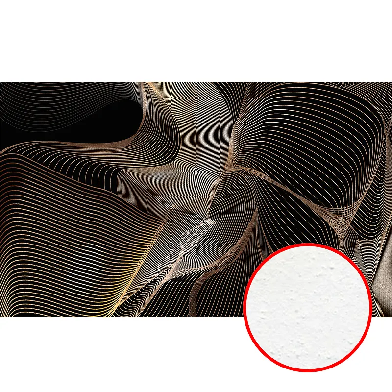 - Фреска с абстракцией в черно-золотых тонах привлекает внимание и подчеркивает индивидуальность вашего стиля.