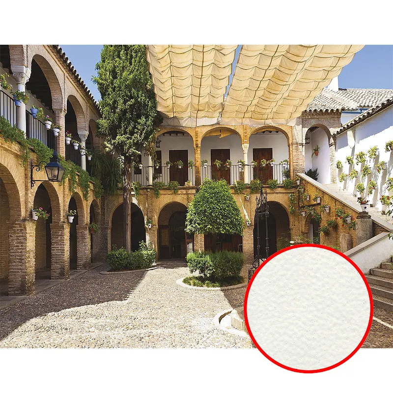 - Флизелиновая фреска с фактурой флок FLK: Обеспечивает прочность и долговечность, идеально подходит для внутреннего декора.