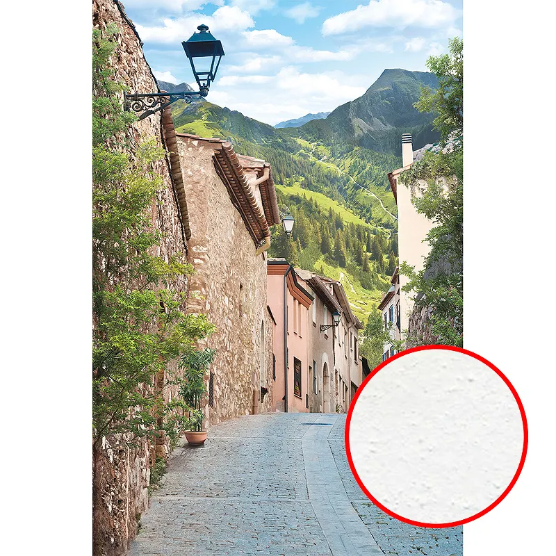 Флизелиновая основа с текстурированным напылением имитирует декоративную штукатурку, создавая эффект бархатистой поверхности.