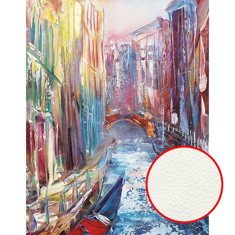 - Высокое качество изображения: текстурированная поверхность создаёт эффект объёмной живописи, что добавляет глубину и выразительность городской тематике.