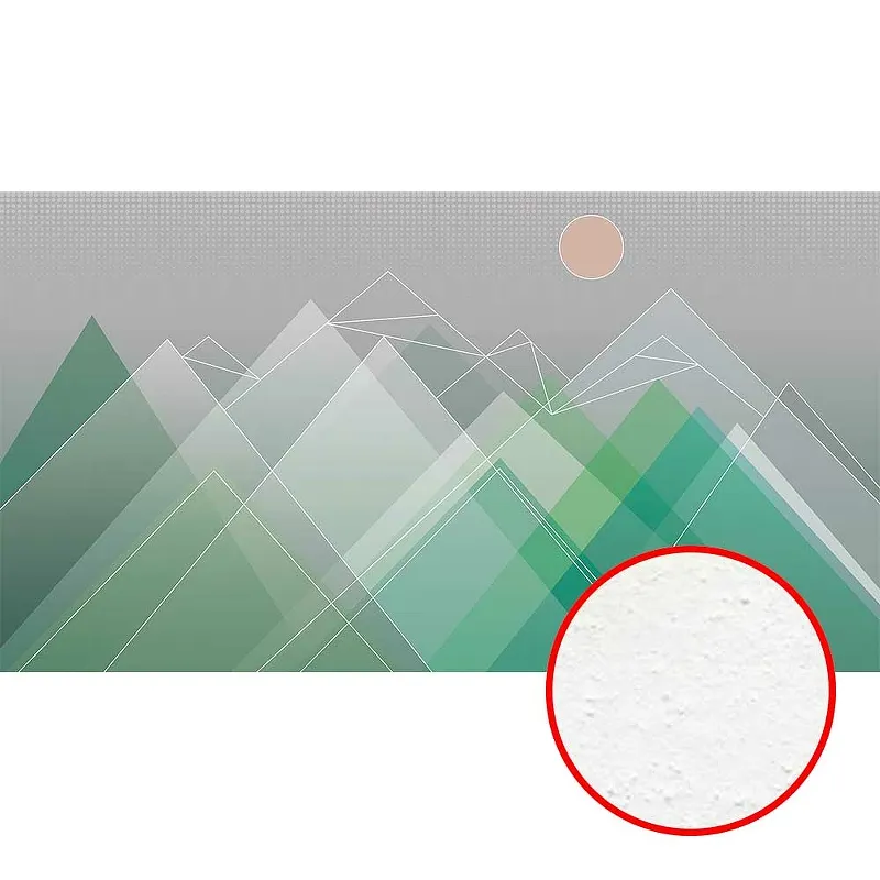 - Фреска на флизелине (размер 5,5 м x 3 м) с рисунком гор и абстракцией.