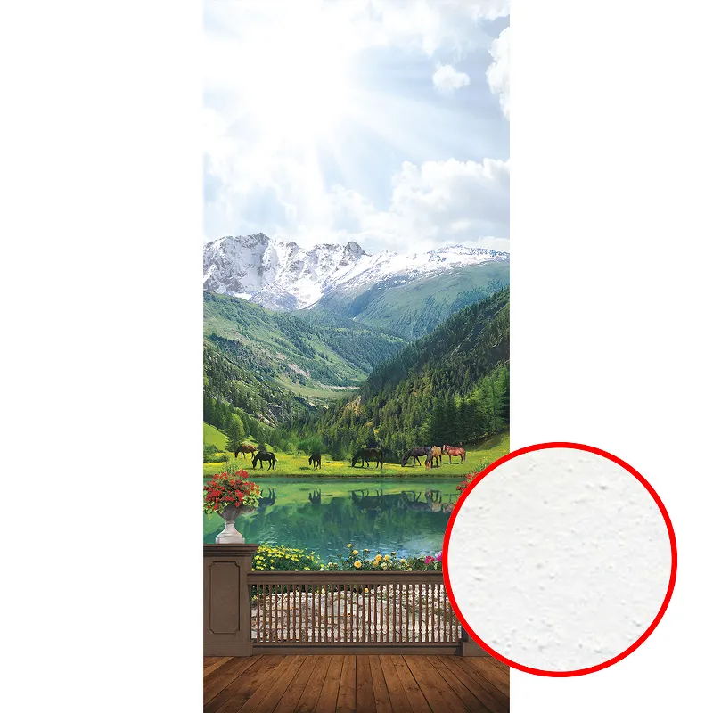 - Уникальный дизайн: Фреска с изображением горного пейзажа создаёт ощущение простора и природы в интерьере.
