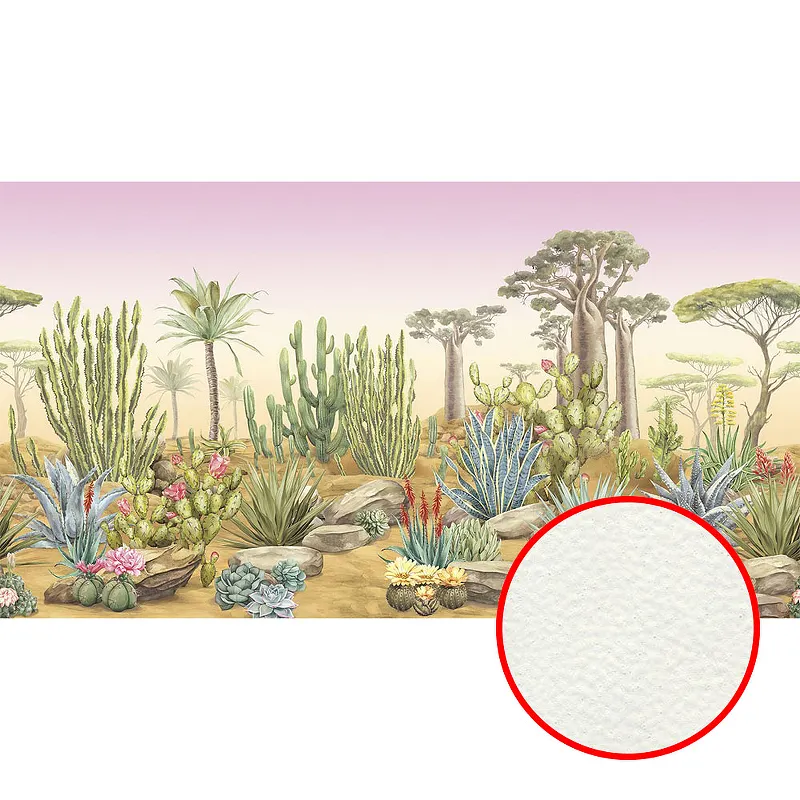 Фреска Ortograf Its Jungle 33659 Фактура флок FLK Флизелин (5,5*3) Розовый/Бежевый/Зеленый, Деревья/Цветы