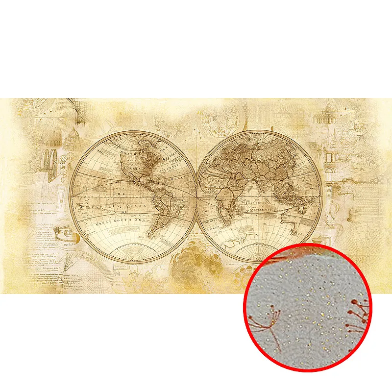 Фреска Ortograf Карты мира 3076 Фактура флок FLK Флизелин (4*2) Бежевый, Карты арт-3076 (флок FLK) — фото 3, Фрески