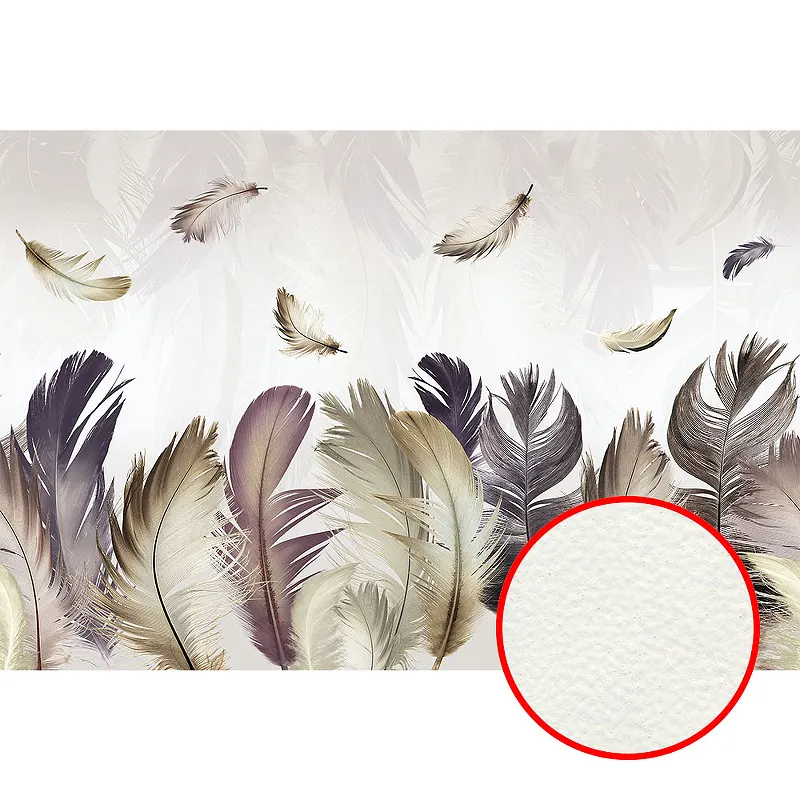 Фреска Ortograf Levity 33358 Фактура флок FLK Флизелин (4*2,7) Бежевый/Серый, Перья арт-33358 (флок FLK) — фото 3, Фрески