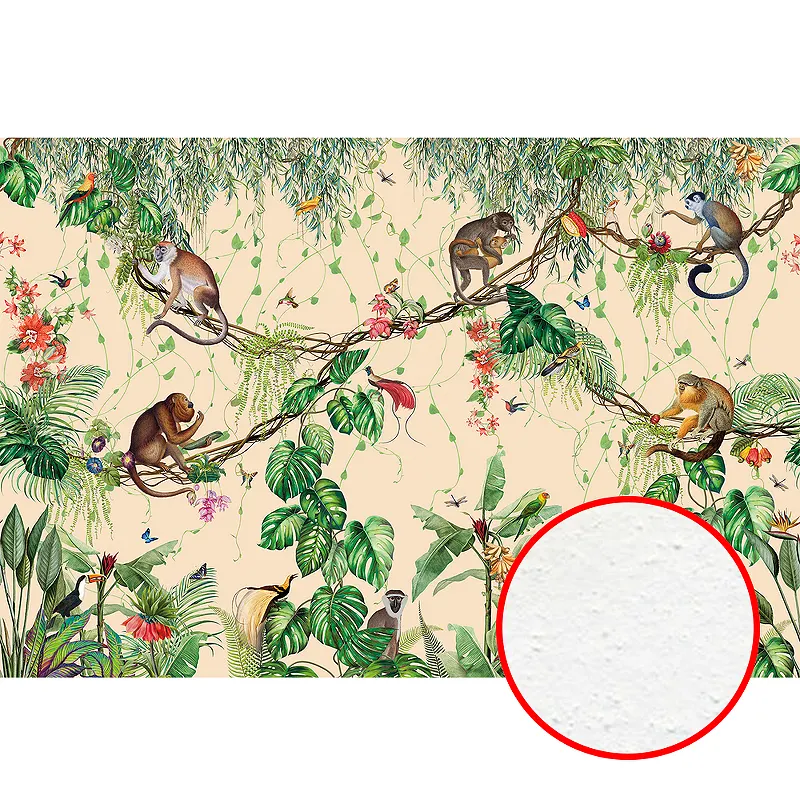 Фреска Ortograf Miracle 33860 Фактура бархат FX Флизелин (4*2,7) Бежевый/Разноцветный, Листья/Животные